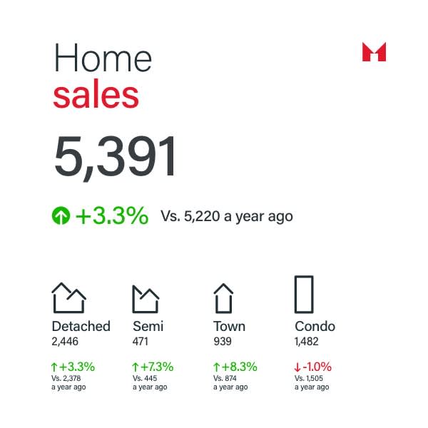 The increase in sales for detached and semi-detached homes suggests a growing interest in these housing types, possibly due to buyers seeking larger living spaces. Conversely, the slight decline in condo sales may reflect ongoing concerns about high-density living in a post-pandemic environment.